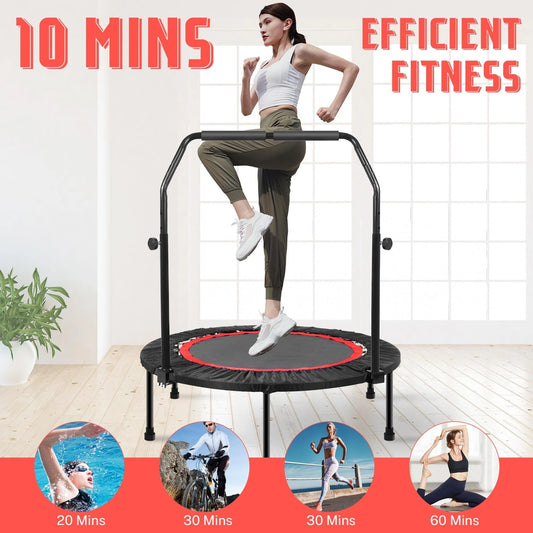 Pentinm 40'' Fitness Trampoline, Foldable Mini Indoor Garden Workout Trampoline for Adults, Exercise Rebounder Trampoline with Adjustable Foam Handle, 330 lbs, Black